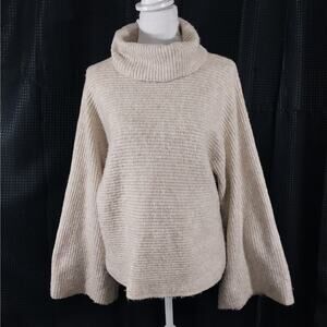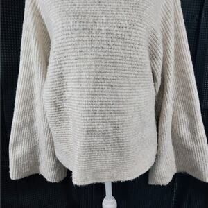 WORTHINGTON! OATMEAL & CREAM HORIZONTAL KNIT BELL SLEEVE SWEATER! SZ L