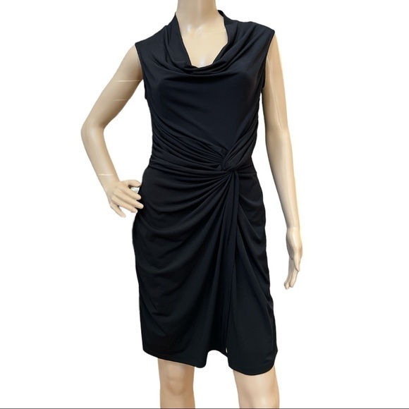WORTHINGTON PETITE STRETCH DRAPED WRAP BODYCON BLACK DRESS SIZE PM