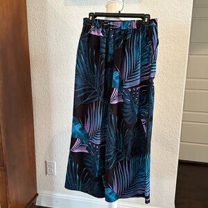 Gorgeous Teal Tropical Palm Print with a splash of Mauve