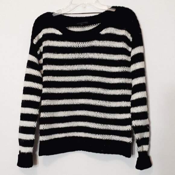 WORTHINGTON Short Black & White Striped Pullover Sweater; Size Large