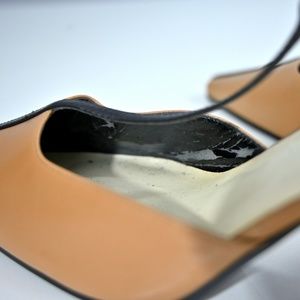 Features: Solid pattern design with black trim accents. Classy and sophisticated t-ankle strap, European style pumps. Pointed toe. Metal buckle closure. Made in China