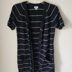 WORTHINGTON Vintage Short Sleeve Cardigan Striped Sweater Black & Grey Sz S