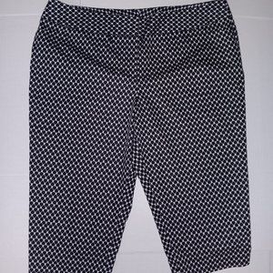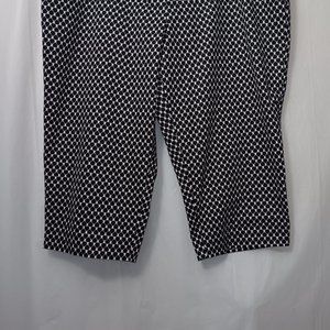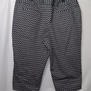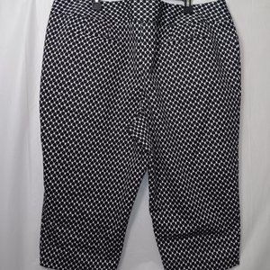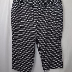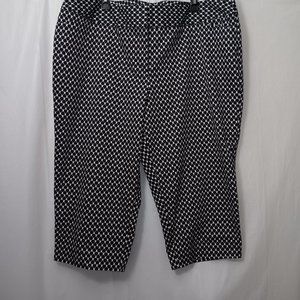 Size 22W - Worthington Woman Modern Fit Capri Pants in a black and white color print has functional pockets the material is 56% cotton, 42% polyester, and 2% spandex in gently used preowned condition