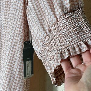 WORTHINGTON WOMAN Women's Top Geometric Pattern Size 2X Tan Multi Color Tan-Cream-White 3/4 Sleeves Lightweight Sheer NWT
