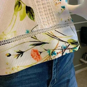 WORTHINGTON White Short Sleeve Floral Spring Middle Lace Top PETITE Medium.