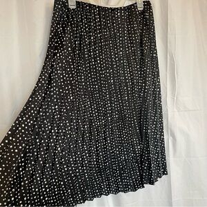 WORTHINGTON Women’s Black White Dot Silky Pleated Flowy Skirt Size Large