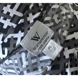 WORTHINGTON Womens Petite Size PL Short Sleeve Gray Black White Patterned Shirt