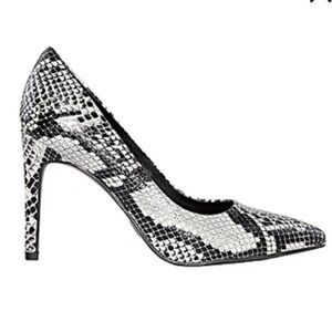 WORTHINGTON ZOE POINTED TOE STILETTO HEELS PUMPS,BLACK WHITE SNAKE PRINT