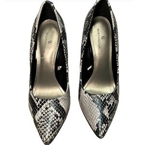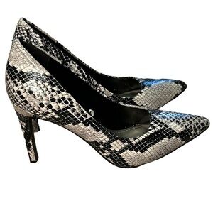 WORTHINGTON ZOE POINTED TOE STILETTO HEELS PUMPS,BLACK WHITE SNAKE PRINT, SIZE 6