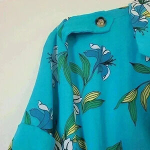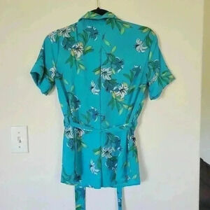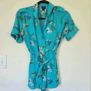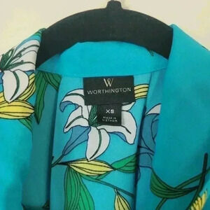 WORTHINGTON blue and yellow xs shirt snacked waist with tie floral jcpenny
