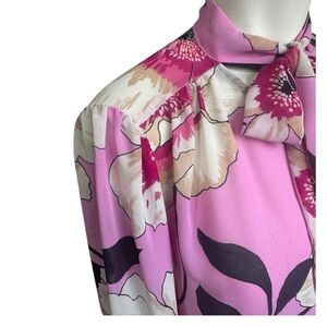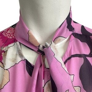 WORTHINGTON pink & fuschia maximalist floral blouse with neck tie women’s medium
