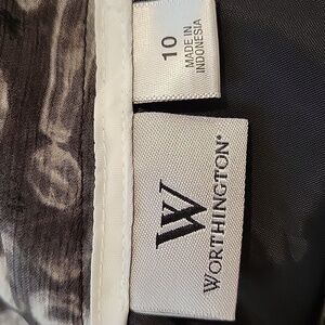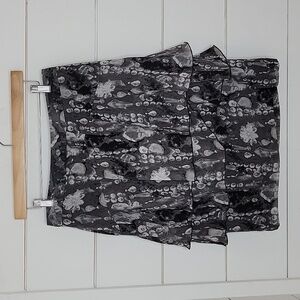 WORTHINGTON size 10 grey & black knee length skirt. Tiered and ruffled.