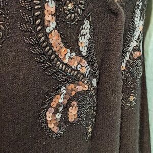 WORTHINGTON BLACK BEAUTIFULLY ADORNED RHINESTONE, BEAD, SEQUIN LONG SLEEVE SWEATER