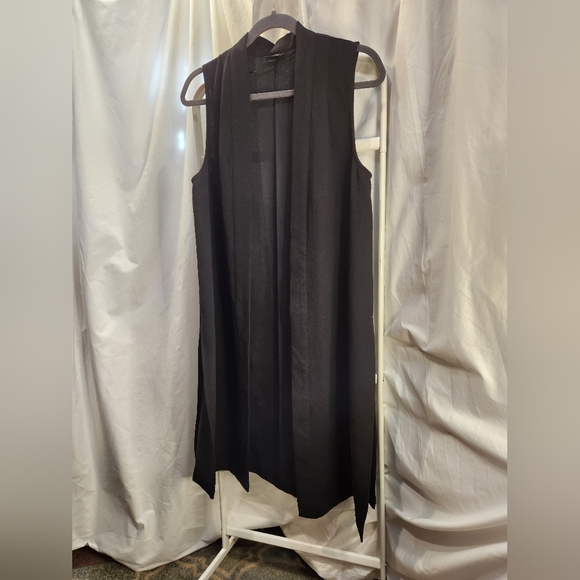 Wossio Black Long Open Front Vest with split sides. Add to any outfit for that touch of BoHo Chic. Like this Misguided Shirt Dress ... or a great pair of jeans and your Cowboy Hat and boots ...