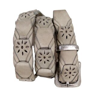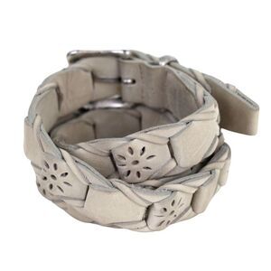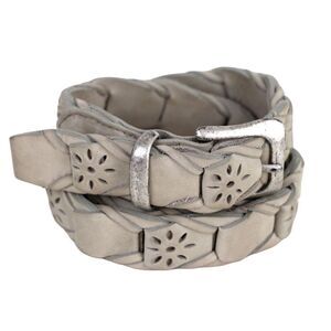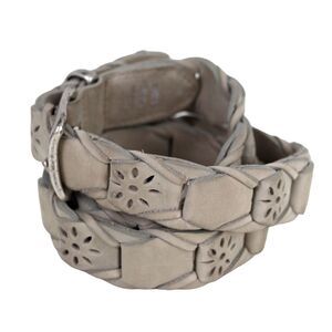 WOVEN CUT OUT GRAY GENUINE LEATHER 1"Wd CASUAL DRESS WOMEN'S BELT Sz S/M (K16
