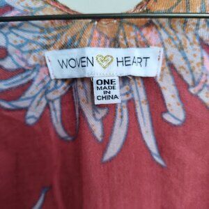 WOVEN HEART Red Floral Semi Sheer Open Front Long Kimono Beach Swim Coverup Boho OS