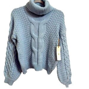 WOVEN HEAR NWT Women’s Cable Knit Sweater Size XS Cozy And Comfy Baby Blue Sleeves Are Slightly Ballon