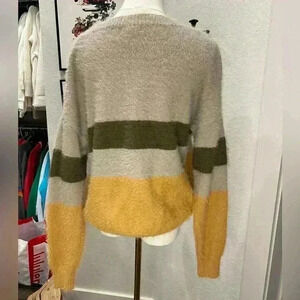 WOVEN HEART Striped Colorblock Fuzzy Sweater Size Small Women