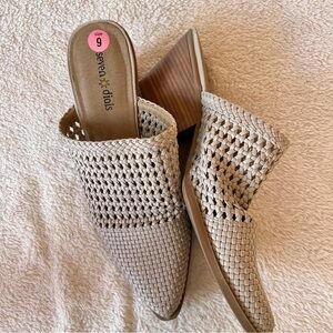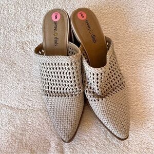 WOVEN MULE SLIDES BLOCK ANGLE HEEL SIZE 9 TAUPE EUC