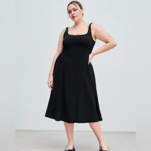 WOVEN SQUARE NECK SOLID RUFFLE MIDI DRESS CURVE & PLUS