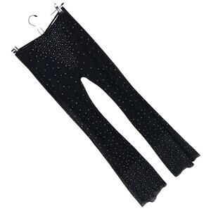 Breaking my "names only" rule for these unique pants, leggings! These club pants are just wowwww over the top cute! In see through black stretch, they feature elaborate rhinestone embellishment and wide bell bottoms! Meant to be skin tight, these pants, slacks are just too sexy! Size L, worn one time! No content or care tag- likely a nylon & spandex blend, definitely hand washable! Excellent! Superb EUC Condition! **ABSOLUTELY GUARANTEED CONDITION: EUC MINTY-EXCELLENT TO LIKE-NEW, by Lily @HauteClub!***