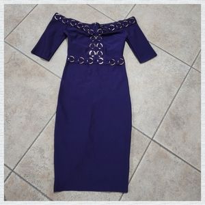 WOW Couture bodycon dress color purple/gold size small. Runs one size smaller,I wear size small and it fit me tight. Please see the pictures for the measurements.