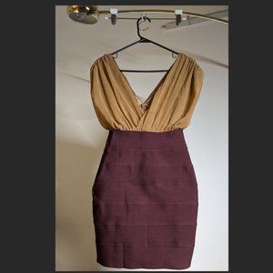 WOW Couture Beige and Wine Mini Wrapped Bandage Bodycon Dress Size S HP 10/17
