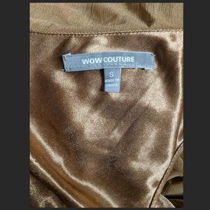 WOW Couture Beige and Wine (or tan and maroon?) Mini Wrapped Bandage Dress Size Small. Gently worn, not torn. Definitely difficult to photograph the color on this one, but the photos that show more subdued shades are those I would deem most accurately reflecting its presentation in person (hopefully that helps). The bottom half of the dress is wrapped to fit, with flexibility in the bandaging to hug curves! I'm almost 5'8" and have close to a perfect hourglass shape, and would say that while it fits my curves, at my height, it would better fit someone either shorter than me OR less curvy, but not someone with my curves AND height. Zips up the side from mid-hip to under the arm. Has a single snap closure in the front of the v-neck to prevent nip-slip accidents.