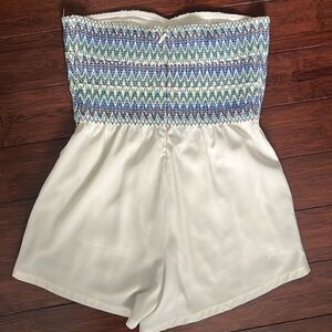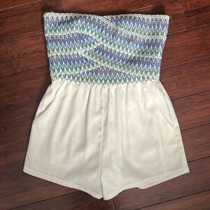 WOW Couture Embroidered Shorts Romper - EXCELLENT Condition - Like New - Small - Pockets - Zip Up in Back - Hook Clasp Closure - Tube Top Romper White & Blue - Lined Shorts and Extra Silicon Grip Gel on Top for No Fall Down Top :)
