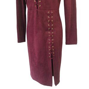 WOW Culture Open Back Bodycon Dress Sz S Faux Suede LaceUp Thigh Slit Wine