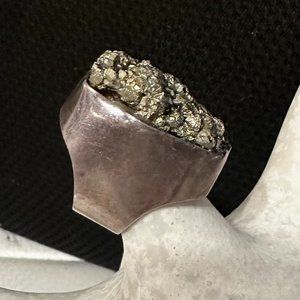 The bold sterling silver ring features a beautiful Pyrite stone with stunning form and texture.