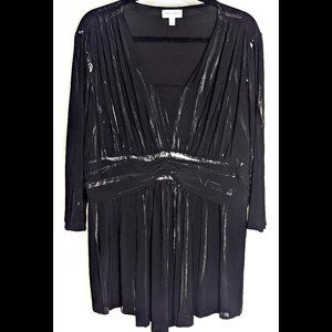 WOW Formal Iridescent FASHION BUG 2X 3X Black & Silver Stretch Dressy Blouse