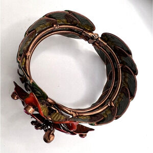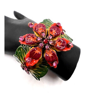 Description: Y2K Enamel Rhinestone Poinsettia Hinged Cuff Christmas Bracelet