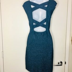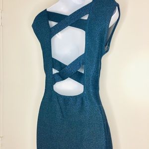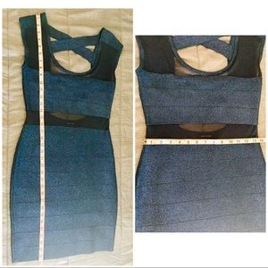 This sexy blue bandage dress looks perfect when you put it on. It has sheer shoulders and sheer waistline, the back is open and has criss cross straps. this dress has good stretch. Measurement pictures posted