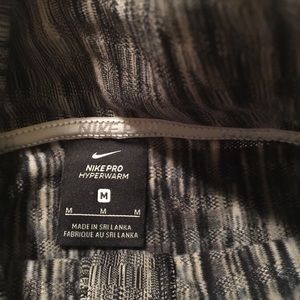 This pattern though! ❤ New women's Nike Pro hyperwarm top in MED! Brand new! The pattern looks really cool in person. Perfect for outdoor activities and will keep you warm as I have quite a few for myself. The interior is soft as shown in the picture and has thumb holes. Keep in mind as this top is meant to be worn fitted.