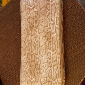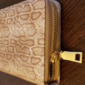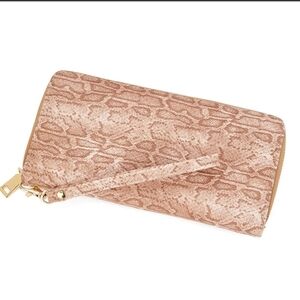 WOZEAH RFID Blocking PU Leather Zip Around Wallet Clutch Faux Snake Cuban Sand