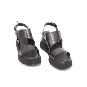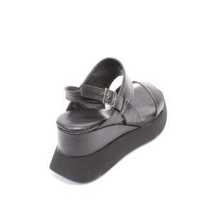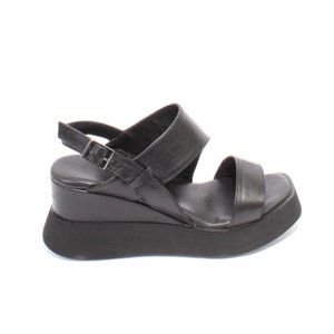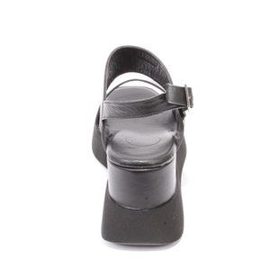 WOz 2566 Black Leather Summer Platform Slingbacks Sandals Shoes