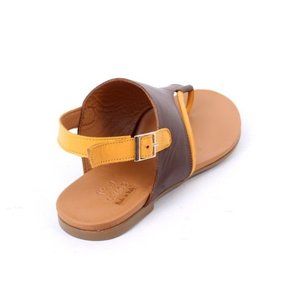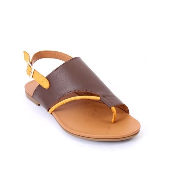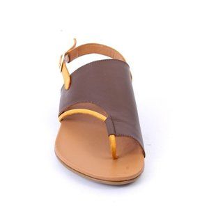 WOz 3015a Brown Leather Open-Toe Slides Sandals Shoes