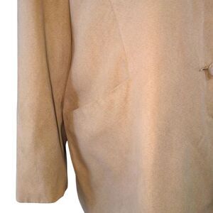 This classic beige coat by WP is designed to keep you stylish and dry. Made with high-quality waterproof material, it features a relaxed fit, long sleeves, and a button-up front, fully lined, with four sturdy buttons. The coat is equipped with two deep front pockets for convenience and a clean, tailored collar for a polished look. Perfect for rainy days or windy outings, this coat is both practical and versatile and is in excellent condition.