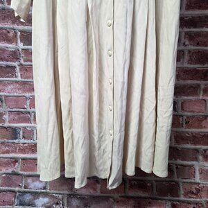 Keywords/Tags: WR II vintage dress, cottagecore cream midi, made in USA retro dress, women’s size 20 vintage, padded shoulder midi dress, vintage heritage dress, long sleeve cream dress