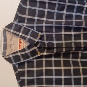 WRANGLER AUTHENTICS, MENS PLAID, BITTON UP, SHORT SLEEVES SHIRT, ONE FRONT POCKET MEASUREMENTS ARE BELOW APPROX.