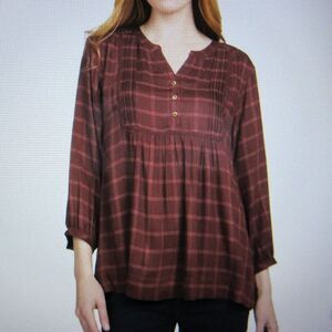 WRANGLER Brown Rust Plaid Blouse Womens Size M (8-10) Popover Top Shirt NWT