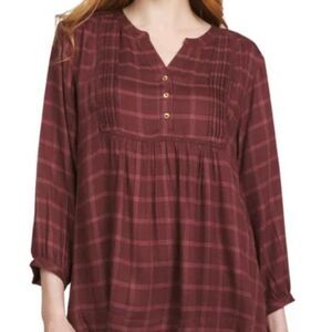 WRANGLER Brown Rust Plaid Blouse Womens Sz L (12-14) Popover Tunic Shirt Top NWT