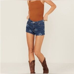 WRANGLER CALIFORNIA DAISY FLORAL PRINT VINTAGE MID RISE DENIM SHORTS SIZE 8
