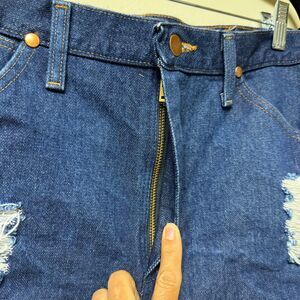 WRANGLER Cowboy Cut Original Fit High Waisted Distressed Denim Shorts, Sz 32