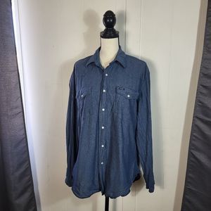WRANGLER Dark Blue Chambray Cotton Pearl Snap Down Shirt Size Large