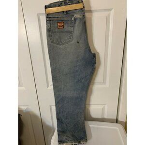 WRANGLER FR RIGGS Jeans Mens 38 x 32, Distressed Blue Flame Resistant. Condition is "Pre-owned".