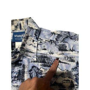 WRANGLER HORSE PRINT BLUE BUTTON DOWN SHIRT SIZE SMALL | U1