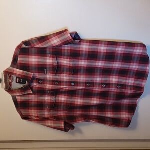 WRANGLER MENS PLAID SHIRT, SHORT SLEEVE, BUTTON UP, TWO FRONT POCKETS.