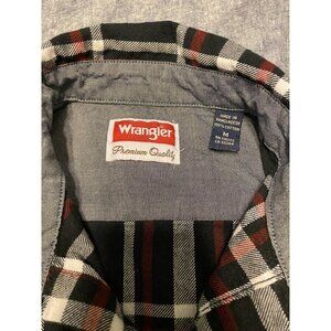 WRANGLER PREMIUM QUALITY MENS BUTTON DOWN PLAID SHIRT - SIZE MEDIUM - RED BLACK
